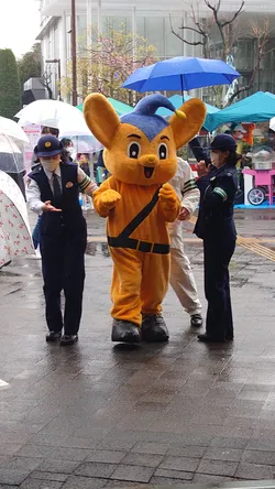 下にも置かない丁重な待遇を受ける、警視庁のマスコットキャラクターであるピーポくん。 きみ偉かったんだね…… (2023年)