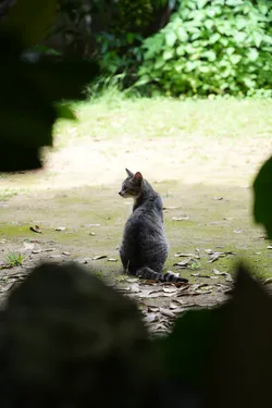 猫が見えたので、フレームで囲いつつ前ボケで具体性を喪失させる。 なるほどね。 スタンダード構図再現ポイントが高い (?)。