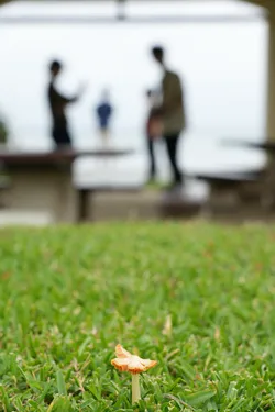 ローアングルの練習。 背景はもちろんぼかす。 そのへんに生えている人間よりも1本しか生えていないキノコの方が大事だからね。