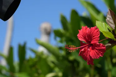 接写に定番の主題であるところの、花。 もちろん望遠端で背景はぼかす。 空と葉と花で RGB 、ついでに塔の白で色のラインナップが揃っていい感じに……と思っていたら別のオタクのカメラがヌッと入ってきた図。 そりゃまあ狙いが被ることもあるわな。 背景に白があるおかげで、黒が入っても色のバランスは案外悪くない。
